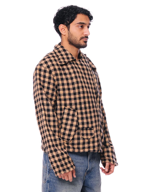 Brown Checkered 'KHES' Biker Jacket